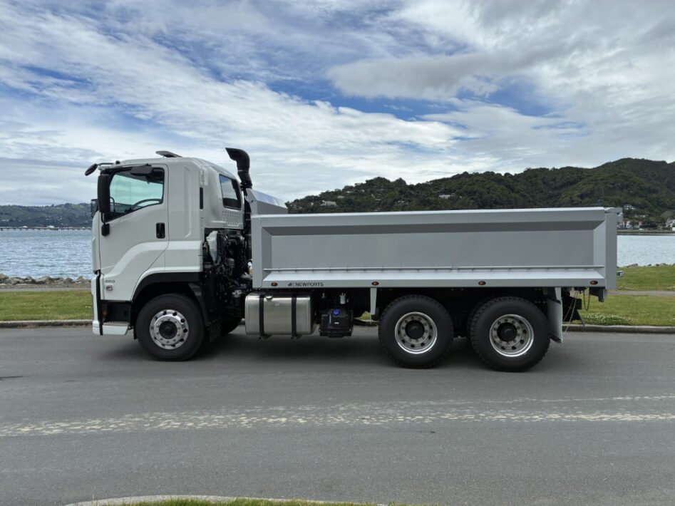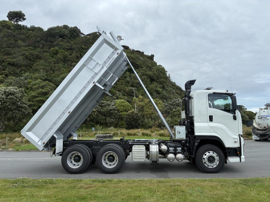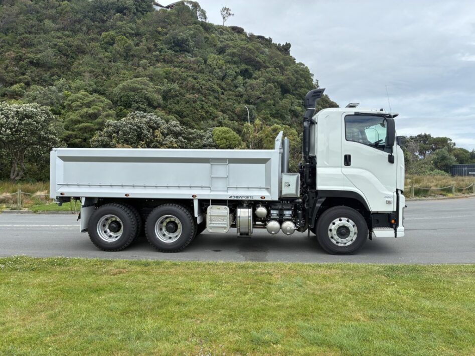 Isuzu CYZ460 AMT Tipper - Available now for immediate delivery. 460 HP. 2,256Nm Torque. 16 Speed AMT Transmission. Hard Steel Bin by Newport Engineering. Internal Dimensions: 4900 mm Long x 2350 mm Wide x 950mm High. 2 Way Tailgate. 50 mm Ringfeder. 6 x Internal Tie Down Points. External Rope Rail. Includes: Sunvisor; Stoneguard; Seat Covers (not shown in photos); Rubber Floor Mats; Reverse Camera; Daytime Running Lights; Beacons: Roof; 2 x Front 2 x Rear. This truck is ready for immediate delivery. Get ready to start 2026 with a brand new Isuzu.